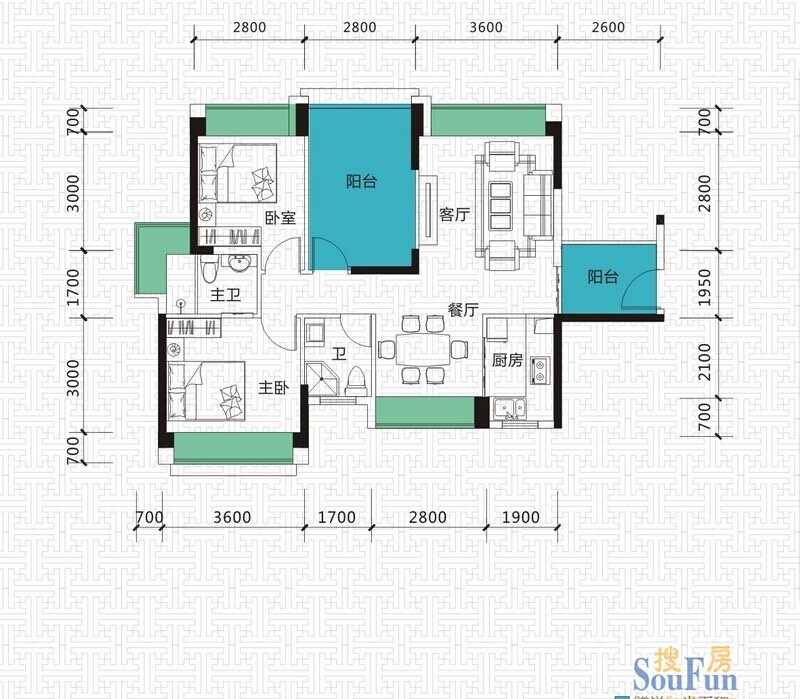 房間間隔 : 76至109平米兩三房